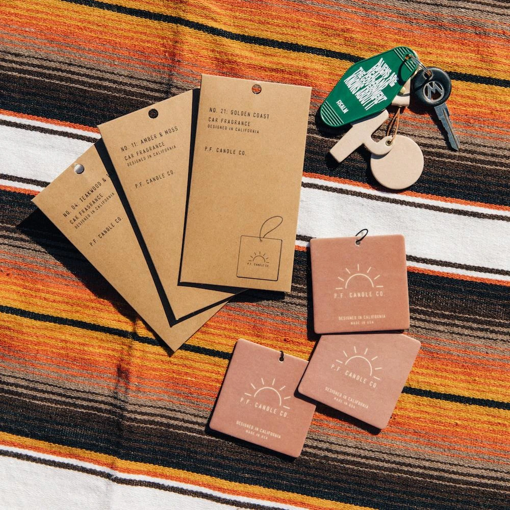 P.F. Car Fragrances are inspired by travel nostalgia, our love of road trips, and the power of scent to make anywhere – even the car – feel like home. Meant first for hanging on the rearview mirror, these are also suitable in other small spaces like bathrooms, closets, and more.
