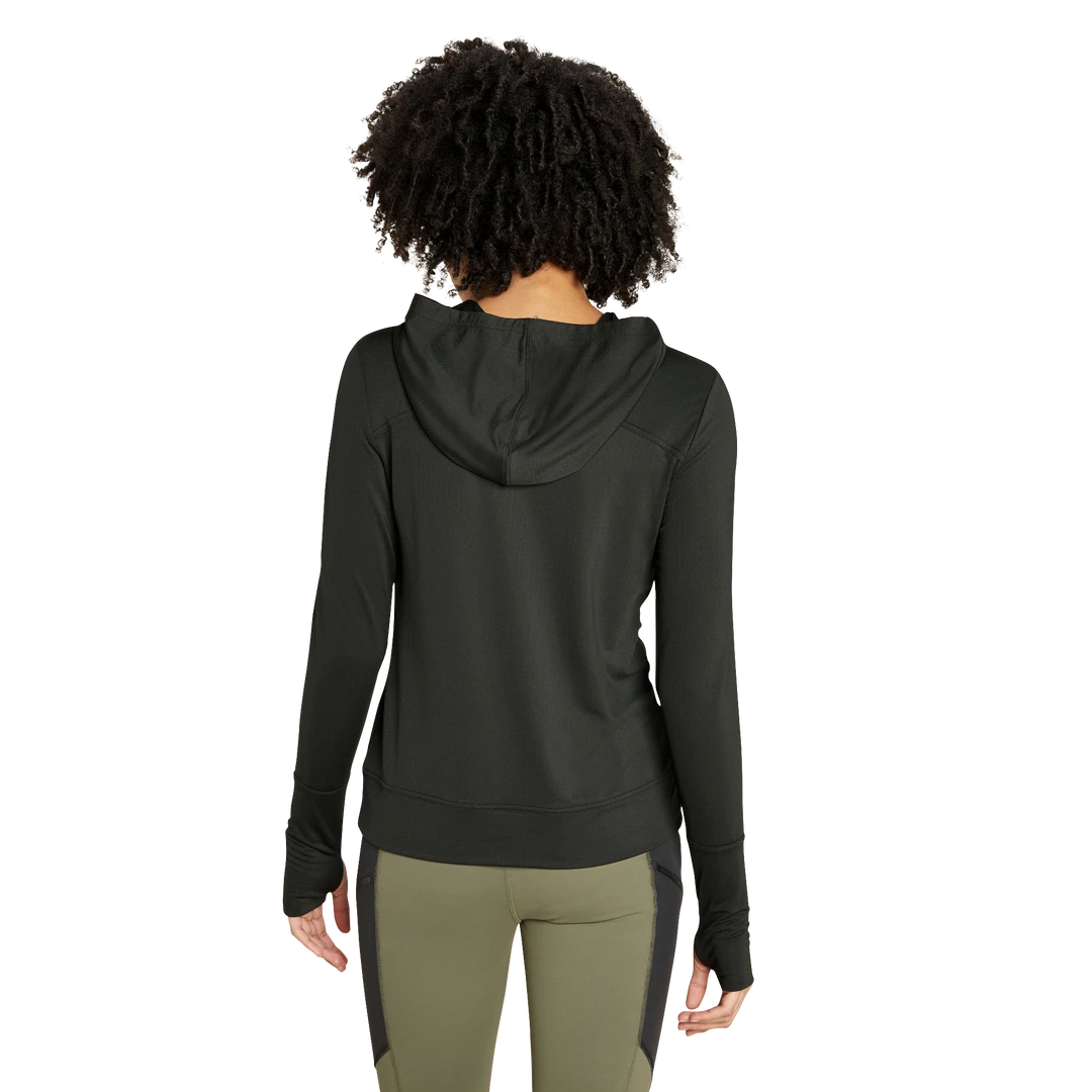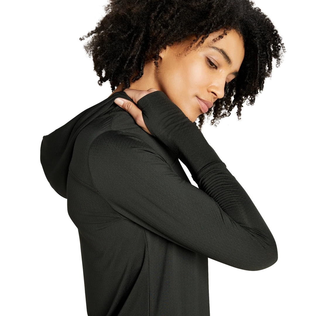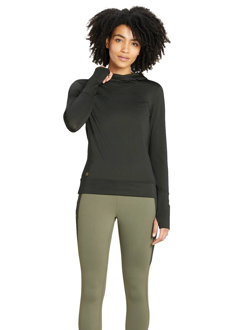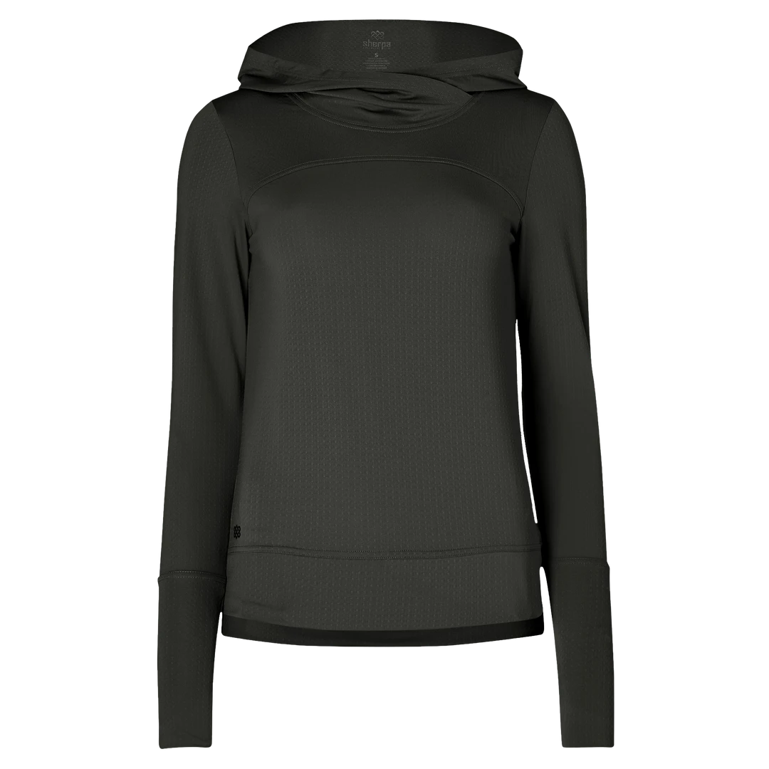 Both soft and functional sun hoodies made from a blend of moisture-wicking polyester and stretchy spandex with HeiQ Fresh odor control, the Aarti Hoodie offers breathability and unrivaled warmth without the additional bulk. Perfect for day hikes with a beautifully designed crossover high neck hood and a high cuff for a relaxed fit. A UPF 50+ coating provides additional protection when the sun appears from behind the clouds.
