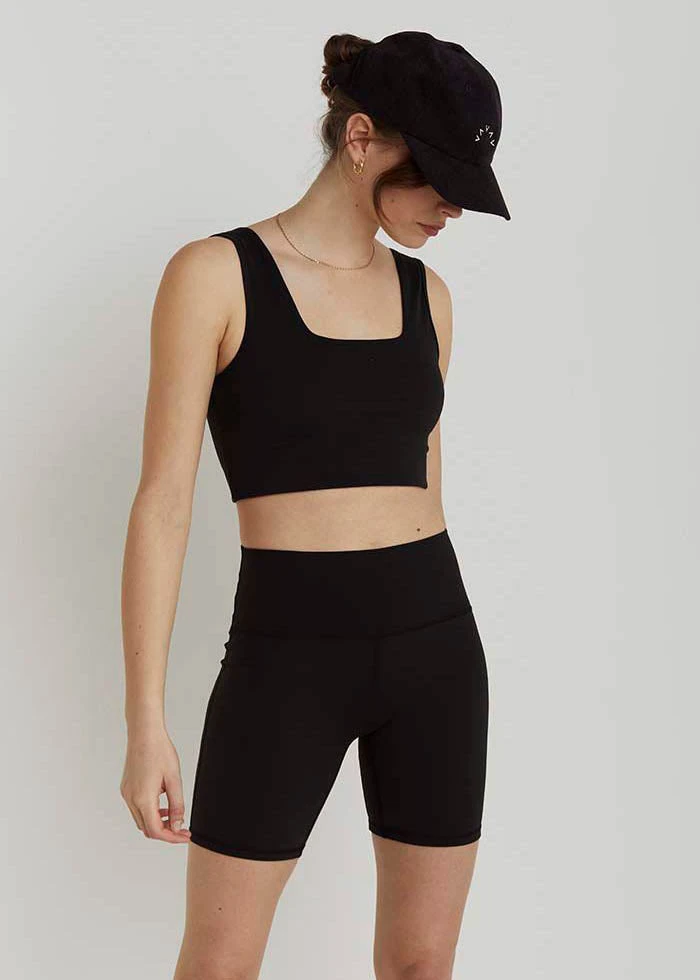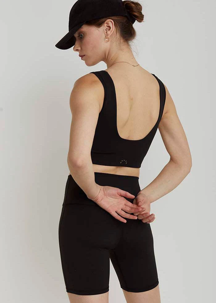 It’s Bike Short Season and Dina is ready to join the crew. What sets this bike short apart is her length. Most bike shorts come in at a 9-inch inseam making them a little too long for some. These still give you all the benefits of the bike short but are slightly more flattering in some cases. The Dina features compression fabric and a high Waistband, she is ready for a studio class or take her to brunch and introduce her to the ladies.