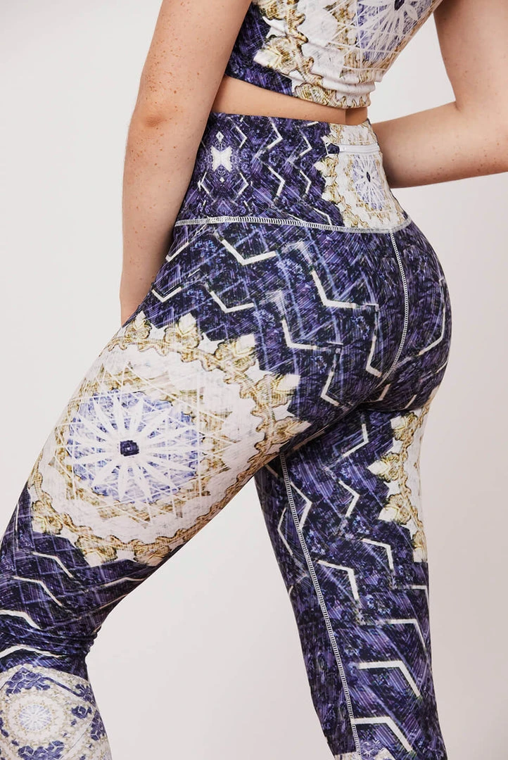 The Reverie print features a beautiful flower mandala inspired by Bali’s magnificent flora and fauna. Pairs well with the or the Reverie Racerback Bra or a white crop tank.