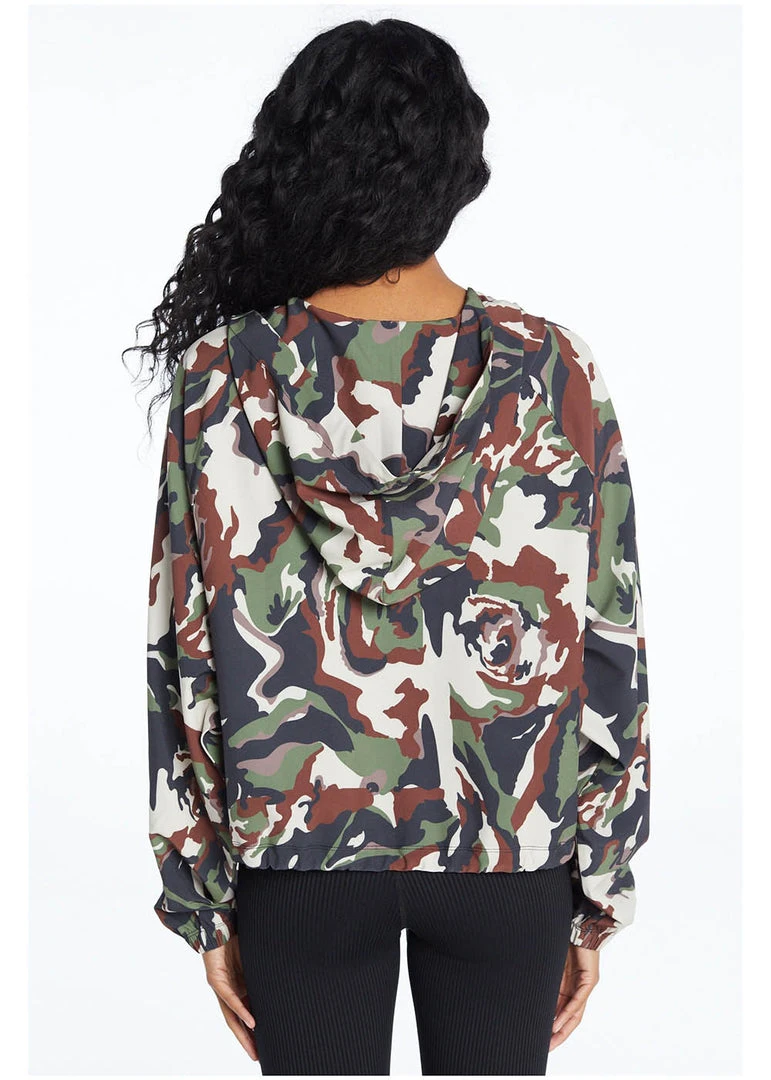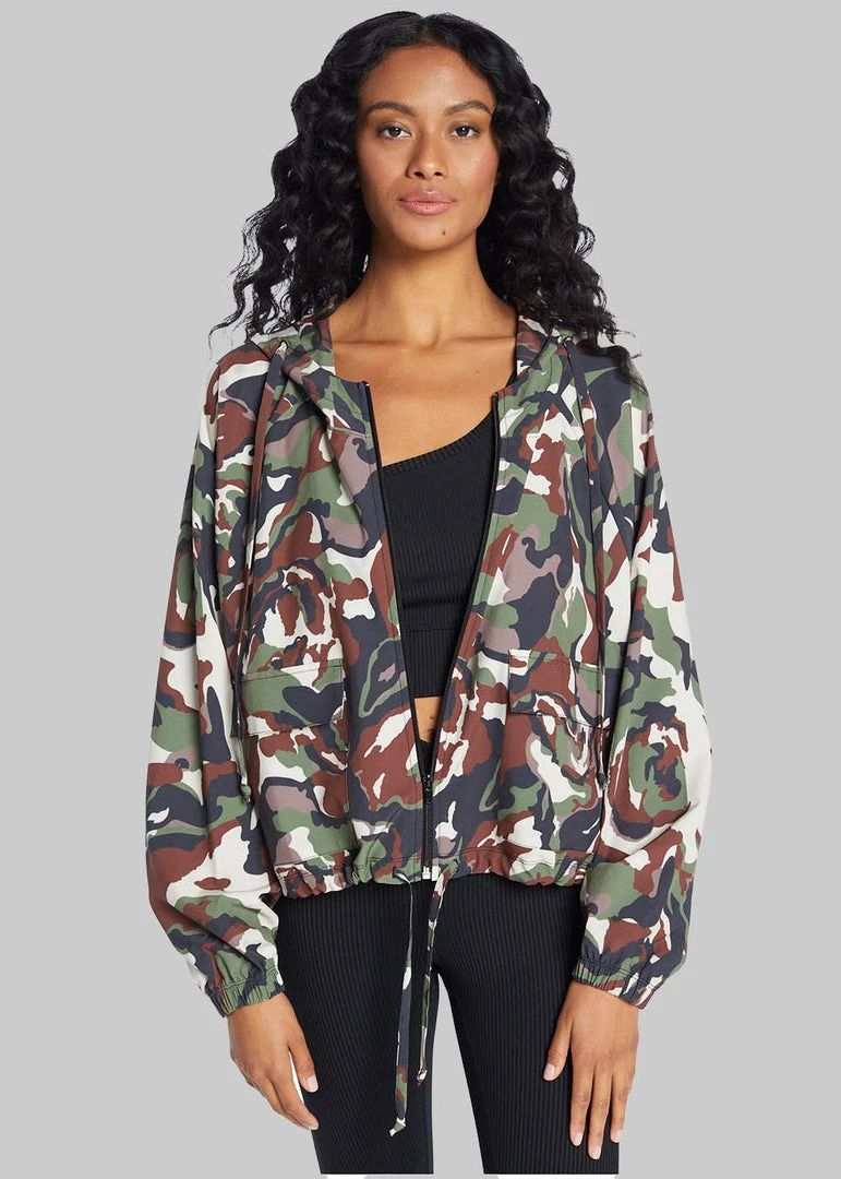 A lightweight, full-zip hooded jacket that is the perfect outer layer against wind or light moisture. Functional pockets. Loose fit. Made of Woven Jersey. This jacket drapes beautifully.
