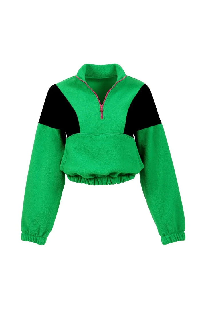 Retro ski lodge chic meets today’s coziest fleece in the Mammoth Cropped Zip. With an 8″ quarter zip mock neck and seam stitch detailing throughout. Soft and drapes easily with a relaxed fit. Holds garment shape. Elastic at sleeves and bottom opening. Made with Polar Fleece.